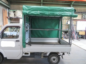 2tトラック固定式オーニング 幌(補強前窓付)を製作しました
